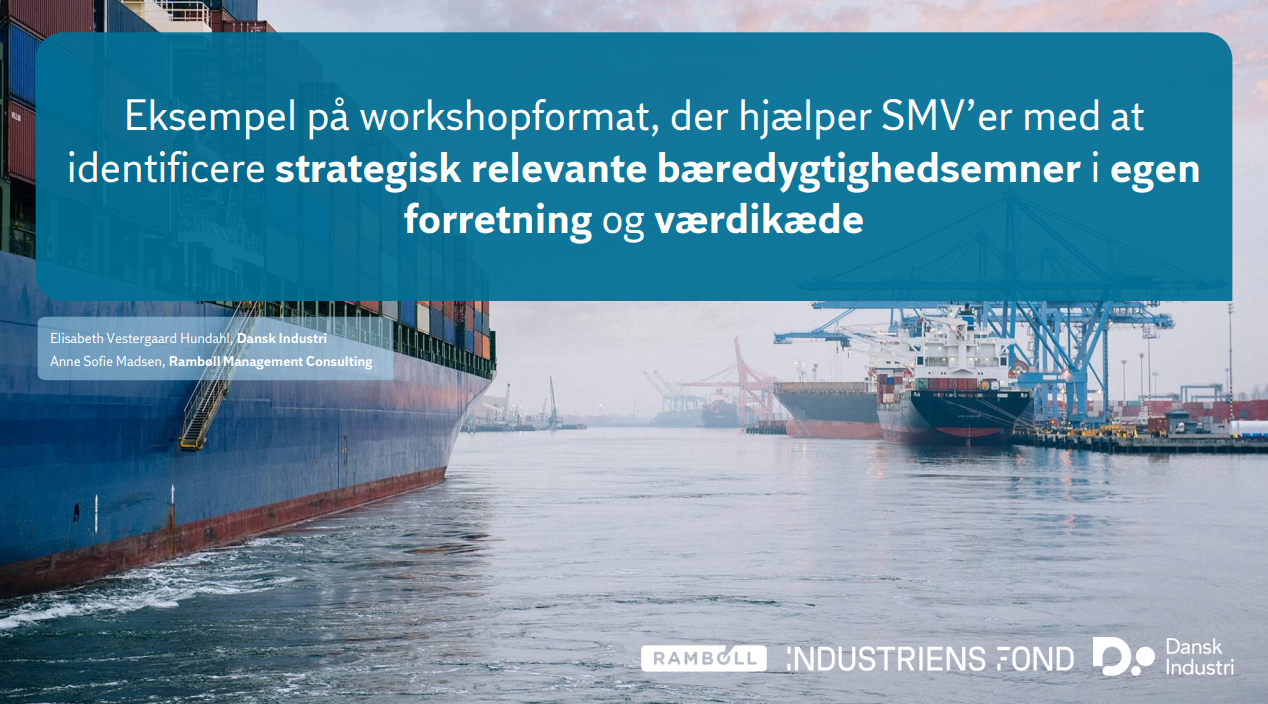VÆRKTØJ: Her kan I downloade et eksempel på et workshopformat I kan bruge, når I som SMV vil identificere strategisk relevante bæredygtighedsemner i egen forretning og værdikæde.
