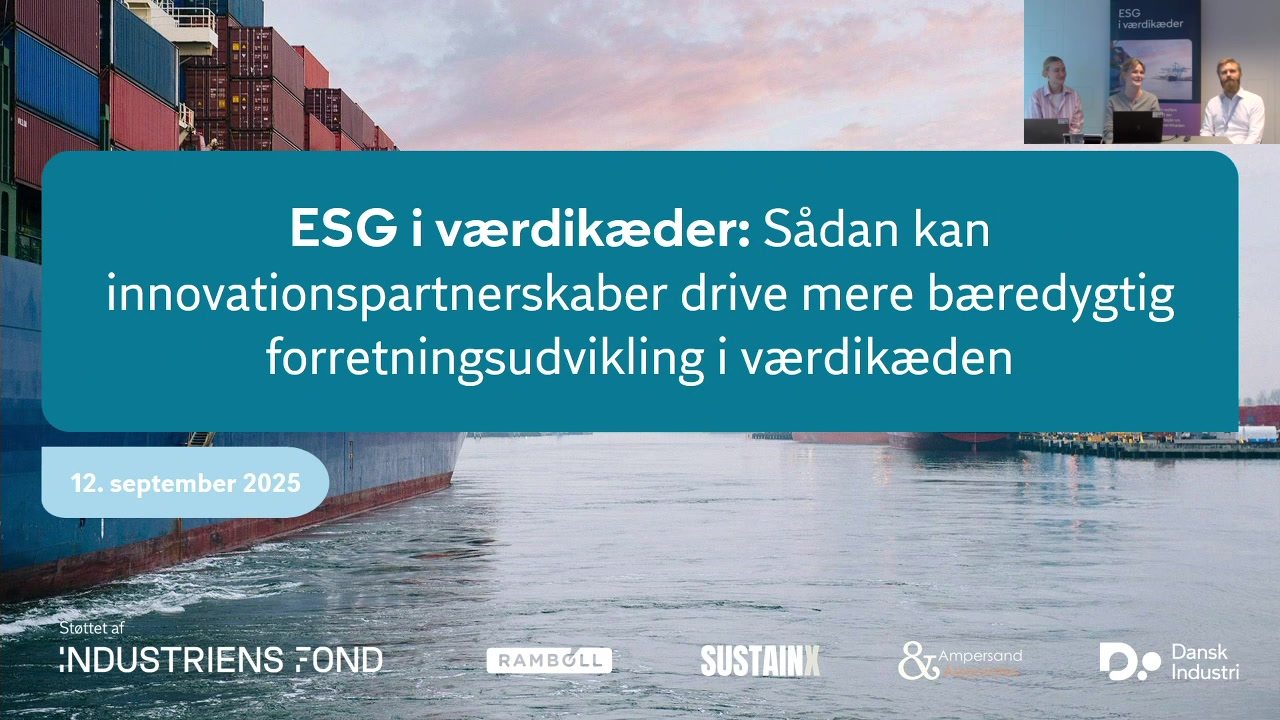 WEBINAR: I dette webinar sætter vi fokus på, hvordan man kan bygge et innovationspartnerskab mellem partnere i værdikæden med mål om mere bæredygtig forretningsudvikling.
